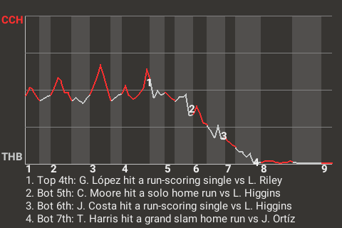 With Thunder Bay leading 3-1 in the bottom of the seventh, Harris batted against Cape Coral pitcher Jorge Ortíz. Harris hit a fastball to left for a grand slam home run. His 12th home run of the season put the Northern Lions BC on top, 7-1.