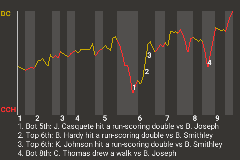 Ben Hardy, who is tied for 8th in the 3L in extra base hits with 34, helped out the D.C. cause in the top of the sixth inning with a run-scoring double. For the game, the third baseman was 1-4 with a double.