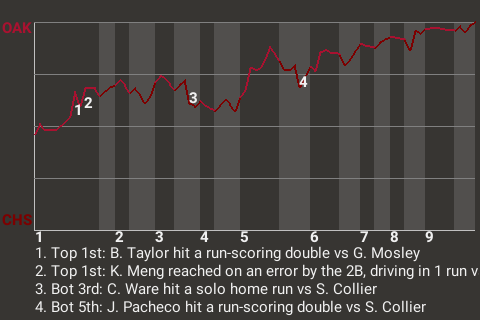 Oakland used a well-timed hit by Brett Taylor to capture the win. The shortstop socked a run-scoring double in the top of the first inning to put the Oaks ahead, 1-0. Though it was his only hit in 5 at-bats, it was important.