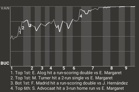 3 (36, 1st Inning off E. Margaret, 2 on, 1 out; 7th Inning off E. Margaret, 2 on, 2 outs; 9th Inning off E. House, 0 on, 0 outs)