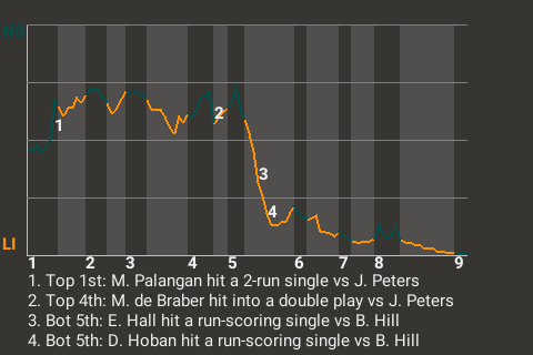 3 (25, 1st Inning off B. Hill, 0 on, 2 outs; 3rd Inning off B. Hill, 0 on, 2 outs; 8th Inning off A. Corrigan, 1 on, 1 out)