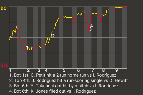 2 (24, 1st Inning off I. Rodríguez, 0 on, 0 outs; 9th Inning off D. Goodhew, 0 on, 1 out)