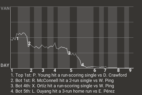 (9, 5th Inning off E. Pérez, 2 on, 0 outs)