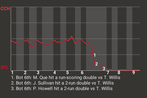 2 (8, 2nd Inning off T. Willis, 0 on, 0 outs; 6th Inning off T. Willis, 2 on, 1 out)