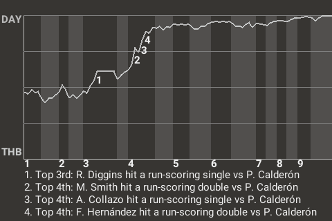 (9, 4th Inning off P. Calderón, 1 on, 1 out)