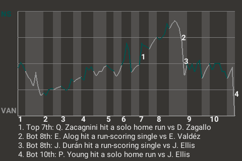 (13, 10th Inning off J. Ellis, 0 on, 2 outs)