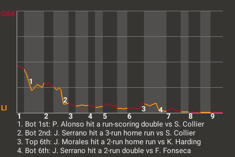 2 (22, 1st Inning off S. Collier, 1 on, 0 outs; 6th Inning off F. Fonseca, 2 on, 2 outs)