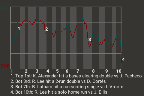 The decisive blow was delivered by Rich Lee in the bottom of the tenth when he hit a solo home run off 39-year old left-handed pitcher John Ellis to win the game for Charleston. The home crowd went nuts.