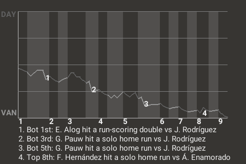 With Vancouver leading 1-0 in the bottom of the third, Pauw hit a splitter from Juan Rodríguez for a solo home run. It was his 14th home run of the season and put the Grey Wolves ahead, 2-0.