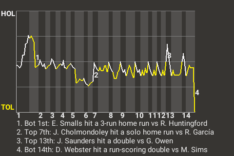 The climactic moment came in the bottom of the 14th for Toledo. That's when Daniel Webster, who finished 2nd in the PL in doubles with 32 in 2059, hit a run-scoring double off Mark Sims to win the game. The home crowd erupted in celebration.