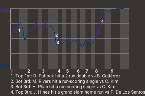 In the bottom of the first inning, third baseman Todd Davis had a grand slam home run for Tacoma. It was his 2nd home run of the season and put the Fur Traders on top, 4-0.