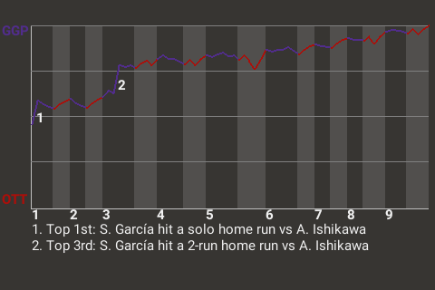 2 (8, 7th Inning off C. Rangel, 2 on, 1 out; 9th Inning off B. Pinkman, 0 on, 1 out)