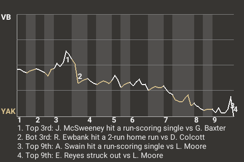 Javellana hit a 2-run single in the bottom of the first to help the Yakima cause. The single, which was hit off Barry St. John, allowed Yakima to take a 2-0 lead.