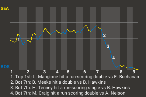 2 (16, 1st Inning off B. Hawkins, 0 on, 0 outs; 7th Inning off A. Nelson, 2 on, 1 out)