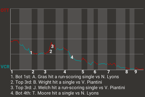 Toledo center fielder Matt Nance contributed a timely at-bat in the bottom of the first. With two down, he hit a fastball to left field for a 2-run single. It was his 25th hit of the season and put the Saboteurs ahead, 4-0.