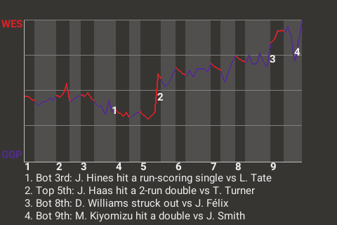 a - F. McClure pinch hit for P. Miranda in the 7th