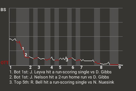 2 (5, 6th Inning off A. Morrow, 2 on, 0 outs; 8th Inning off B. Moore, 0 on, 0 outs)