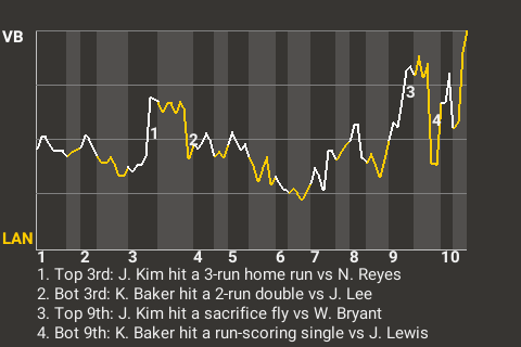 2 (5, 3rd Inning off C. Rogers, 1 on, 2 outs; 9th Inning off U. Erkelens, 0 on, 1 out)