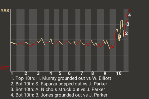 2 (12, 1st Inning off E. Baker, 0 on, 1 out; 8th Inning off E. Baker, 0 on, 1 out)