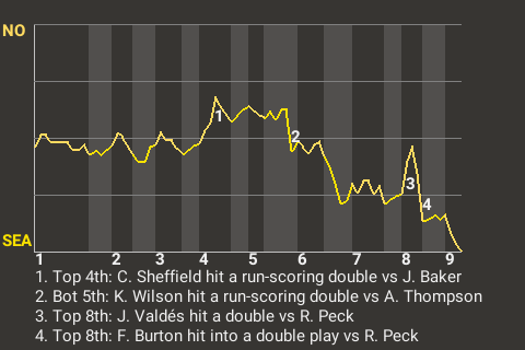 Shortstop Kenny Wilson made an impact for Seattle, when he swatted a run-scoring double off Alex Thompson in the bottom of the fifth. For the contest, Wilson was 1 for 3 with a double.