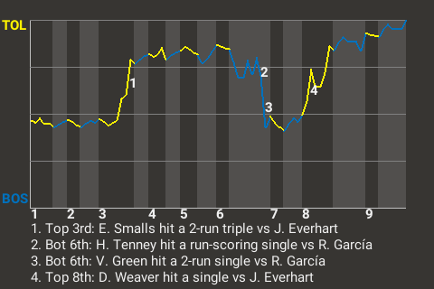 Viet Long drove in one run for Toledo. The 25-year old center fielder had a key at-bat in the top of the eighth. With one out and runners on 1st and 3rd, he broke a 3-3 tie with a run-scoring sacrifice fly off Orlando Díaz. It was his 28th RBI of the season.