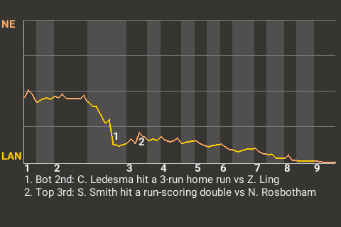 With Lancaster leading 1-0 in the bottom of the second, Ledesma hit a cutter from Zhi Ling for a 3-run home run. It was his 4th home run of the season and put the Farmers ahead, 4-0.