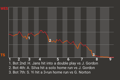 Toledo took a 4-0 lead on Su-chang Yi's 2nd home run of the season. The 3-run home run, which Yi hit in the bottom of the seventh, left Westwood pitcher George Norton visibly frustrated.
