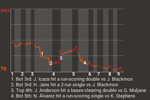 (6, 9th Inning off J. Yates, 0 on, 0 outs)