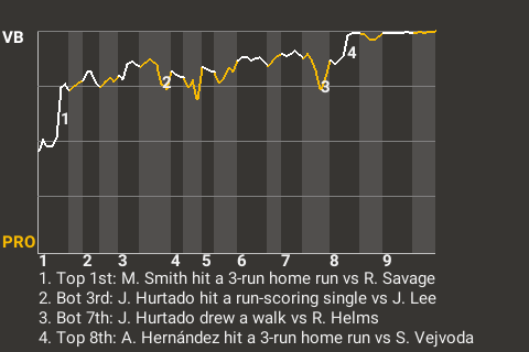 2 (2, 3rd Inning off H. Wu, 0 on, 0 outs; 8th Inning off E. Fajardo, 3 on, 0 outs)