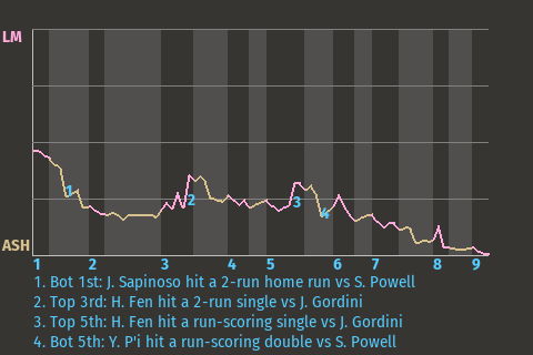 2 (14, 4th Inning off B. Vincent, 0 on, 0 outs; 8th Inning off G. Carlson, 3 on, 1 out)
