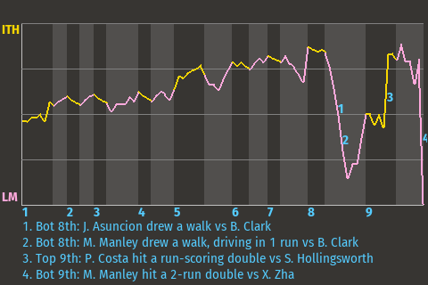 2 (10, 2nd Inning off M. Russell, 0 on, 0 outs; 9th Inning off T. Woods, 0 on, 0 outs)