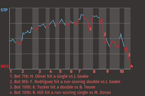 The Virginia Beach Whales beat the Northville Eclipse, 6-4, at Old-Timers Park. Virginia Beach shortstop Jesús Figueroa had the hot bat. He was 3 for 4 with a home run and a double, while scoring 2 times and driving in 2. Pancho Rocha, the winner, is now 5-8. He struck out 3 and walked 2 over 6 innings, while allowing 4 runs on 5 hits. The save went to Jack Barr, his 8th this season.