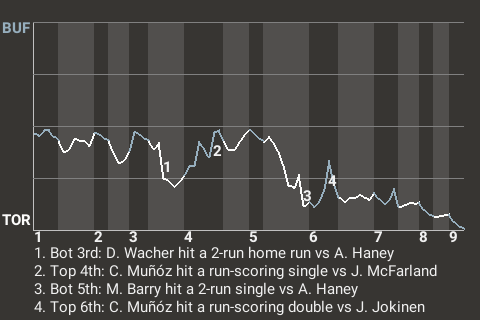 Michael Barry, the Toronto shortstop, contributed a 2-run single in the bottom of the fifth inning to make the score 6-3, Thunder. For the game, Barry went 1 for 3, while adding 3 RBI.