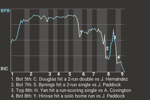 2 (14, 1st Inning off B. Vincent, 2 on, 0 outs; 8th Inning off A. Lawrence, 0 on, 0 outs)