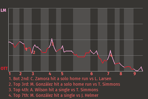 The game was at a stalemate until third baseman Jason Jordan came to bat in the top of the tenth. Facing Casper pitcher Jesús Solís, he hit a first pitch fastball for a run-scoring single. It was a game-changer, putting Lancaster on top, 5-4.
