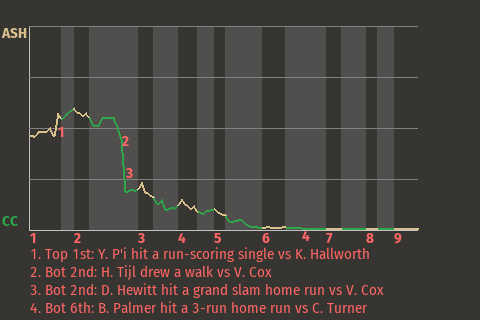 c - H. Chandler pinch hit for R. Mitchell in the 9th