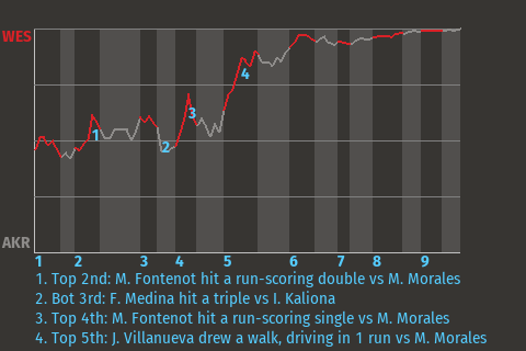 With two out in the bottom of the first, James Anderson hit a go-ahead, 3-run home run. It was his 8th home run of the season and with it the Sixshooters took a 3-0 lead.