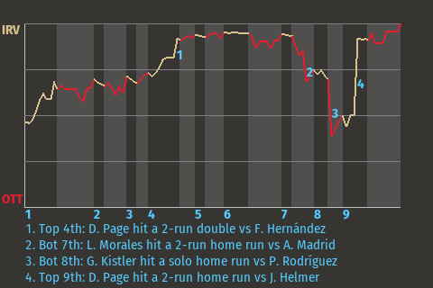 In the top of the third, Ottawa center fielder José Guillén had a productive at-bat. With the bases loaded and two out, Guillén stroked a 2-run single to right. It made the score 3-0, Ottawa. For the game, he went 1 for 3 with a walk, while adding 3 RBI.