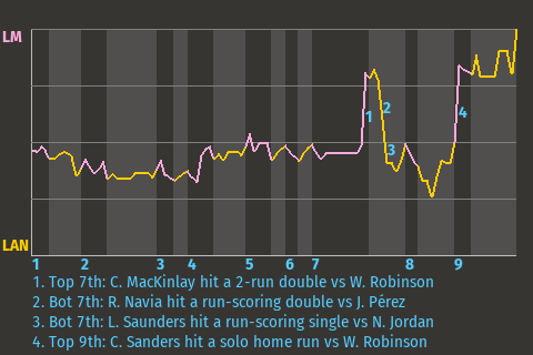 P'an had a timely hit for Tacoma in the top of the seventh. With Tacoma trailing 2-1, he turned a 1-1 fastball into a 2-run home run. It was his 11th home run of the season, making it 3-2, Tacoma.