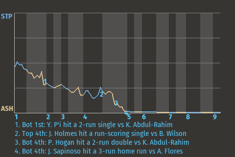 (1, 4th Inning off B. Pinkman, 1 on, 0 outs)
