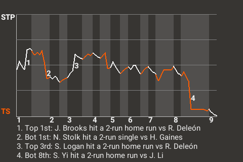Santiago Rodríguez had a big 3-run home run for the Thunder in the bottom of the first inning. With St. Petersburg leading 2-0 and runners on 1st and 2nd, he sized up a fastball from 27-year old right-handed pitcher José Sandoval and punished it. The result was his 1st home run of the season, which put the Thunder on top, 5-0.