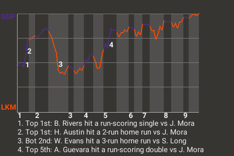 Minnesota took the lead, 5-4, on Simon Tapley's 1st home run of the season. The 2-run home run came off Lake Murray pitcher Dale Hodges in the bottom of the seventh.