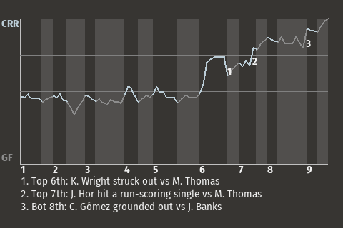 Eric Richards hit a run-scoring triple off Scott Goff in the bottom of the second, which put the Vibes in front, 2-1. Richards had 1 single, in addition to the triple. For the game, he went 2 for 4.