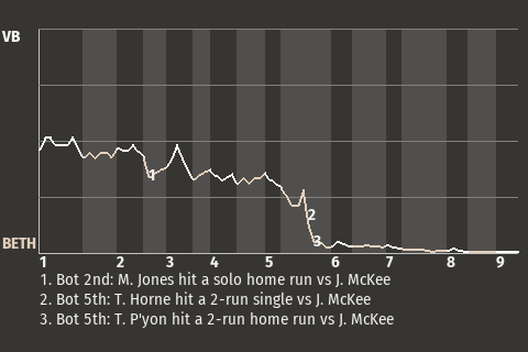 2 (5, 5th Inning off E. Woods, 2 on, 0 outs; 8th Inning off P. De Jesús, 1 on, 1 out)