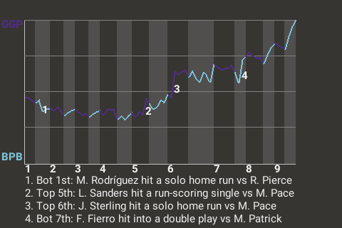 2 (4, 3rd Inning off J. Sankey, 0 on, 1 out; 9th Inning off M. Lee, 2 on, 1 out)