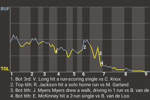 With Toledo leading 2-1 in the bottom of the sixth, Earl McKinney hit a 2-run single off Buffalo pitcher Ben van de Loo. It put the Stingers ahead 4-1.