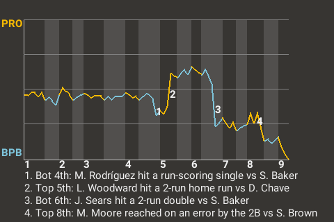 a - J. Sears pinch hit for M. Rodríguez in the 6th