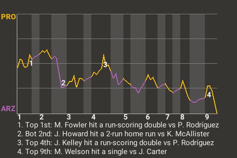 2 (10, 1st Inning off P. Rodríguez, 0 on, 0 outs; 4th Inning off P. Rodríguez, 2 on, 1 out)