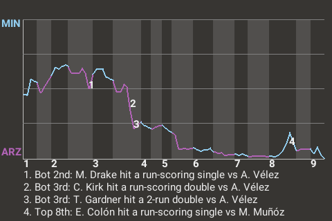 3 (14, 1st Inning off A. Vélez, 0 on, 0 outs; 3rd Inning off A. Vélez, 0 on, 0 outs; 6th Inning off S. Grant, 1 on, 1 out)