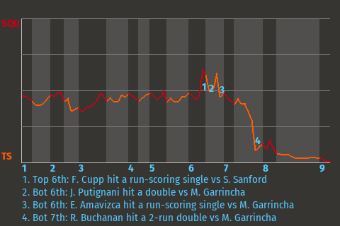 2 (10, 6th Inning off D. Shields, 1 on, 1 out; 8th Inning off R. McDaniel, 1 on, 0 outs)
